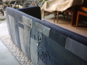 お客さまがちくちく手縫いでつなげられた数々のジーパン。